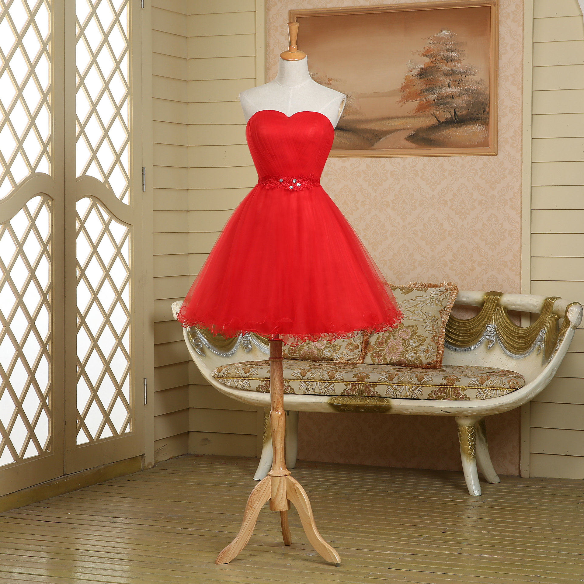Strapless Empire Waist Bubble Ruffled Pleated Lace Tulle Simple