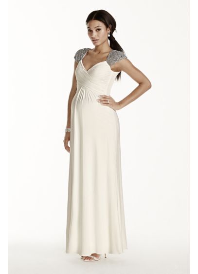 Beaded Cap Sleeve Long Jersey Maternity Dress David S Bridal